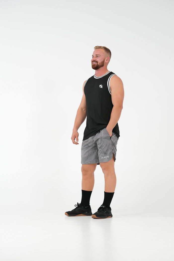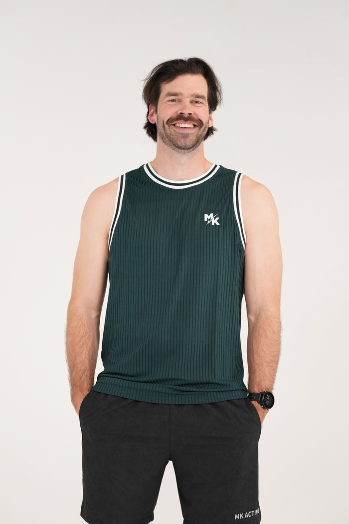 Rach Rib Mid Muscle Singlet Dark Brown Pale Lilac & Green