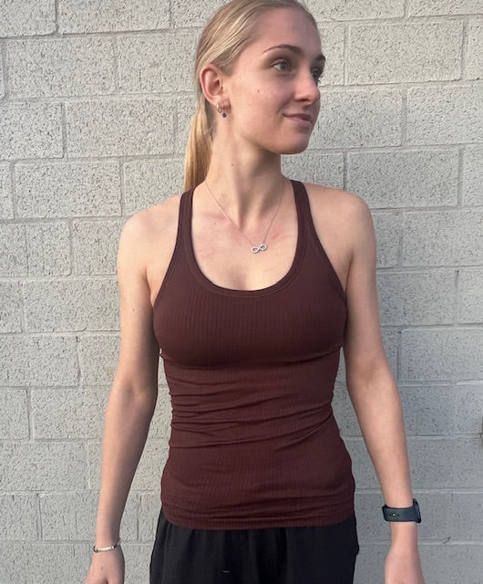 Clean simple fitted perfection! That's the Rach Ribbed Mid/Long Length Muscle Singlet. With removable pads, has a shelf bra that allows you to wear without a bra, muscle back design, and a narrow slim fit, it's engineered for a flattering silhouette.